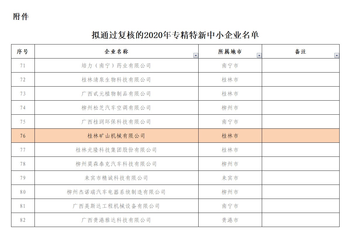 喜報!桂林礦機通過自治區工信廳2020年專精特新中小企業復核公示
